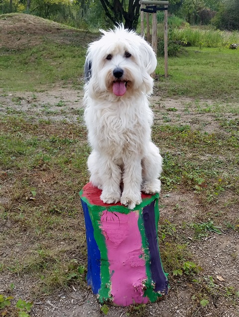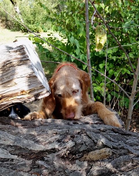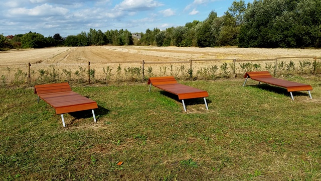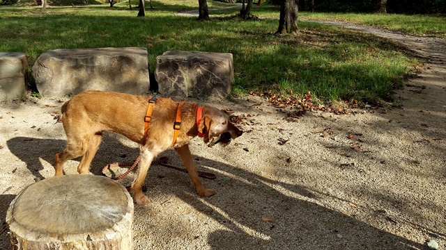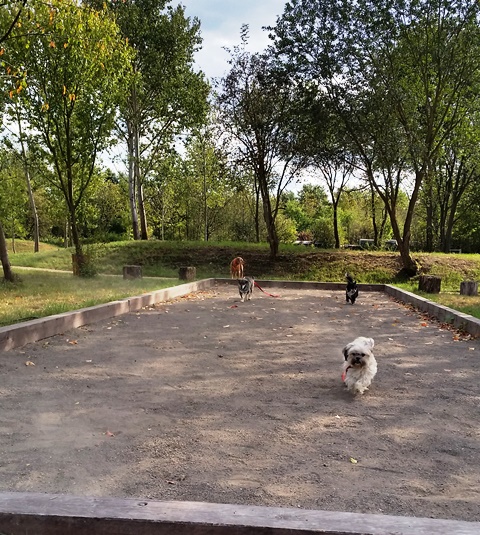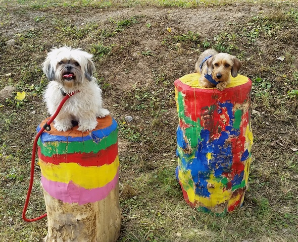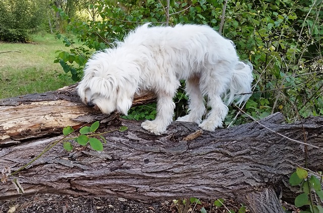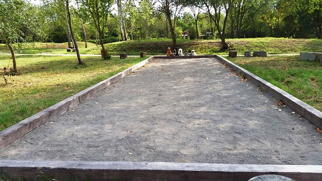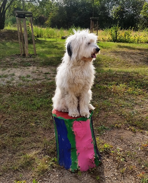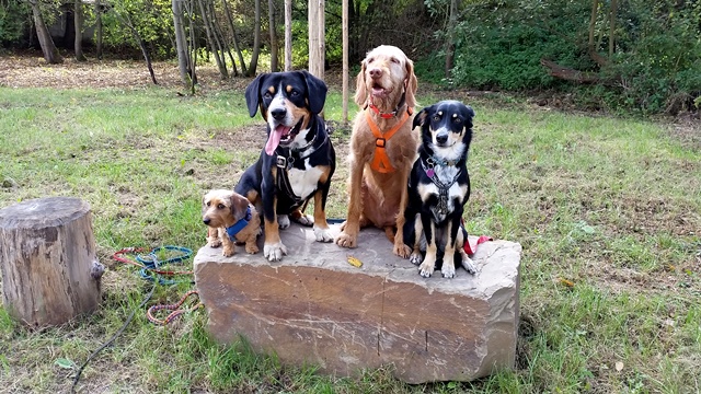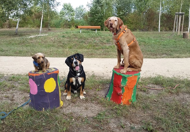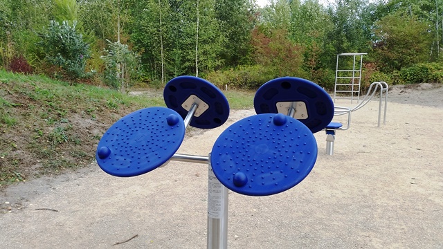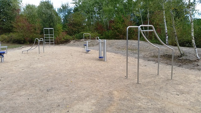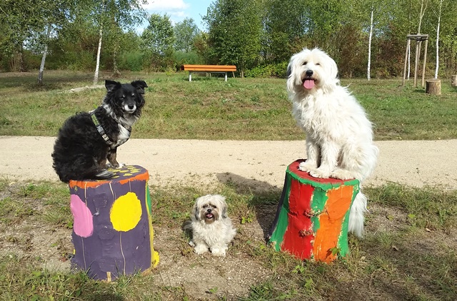 Weiter geht es zu den Holzliegen die zum Sonnenbaden einladen und den Blick auf die Boulebahn lenkt wo man ein paar Kugeln rollen lassen kann. Wir schlendern entlag des Barfußpfades und sind erstaunt wieviel Sitzgelegenheiten sich auf dem Gelände verteilen. Neben Tischen und Bänken kann man auf Baumstämmen und großen Felsbrocken unter anderem am Lagerfeuer beisammen sitzen und klönen. Natürlich haben auch unsere Hunde Spaß auf die großen Steinen und Baumstämmen zu hüpfen und die Aussicht mal aus einer anderen Perspektive zu erkunden. Eine gute Idee sind die Fitnessgeräte für Erwachsene und die Kreuzwippe für jeden ist was dabei. Wir Zweibeiner und unsere Hunde hatten viel Spaß das schön angelegte Gelände zu erkunden und ein Cafe würde das Ganze noch abrunden. Auf jeden Fall kommen wir wieder und werden es weiterempfehlen.