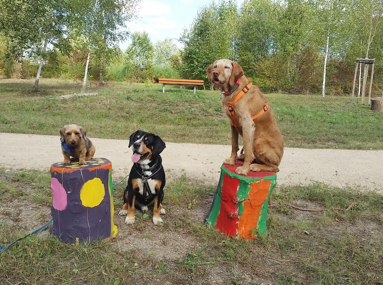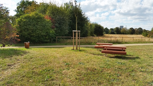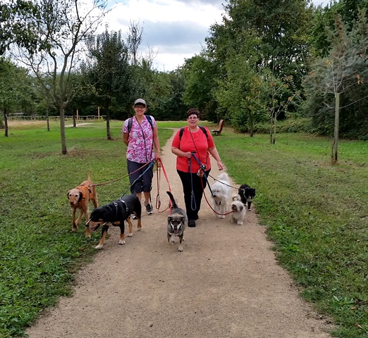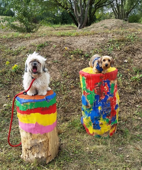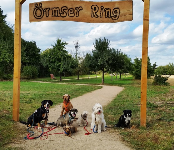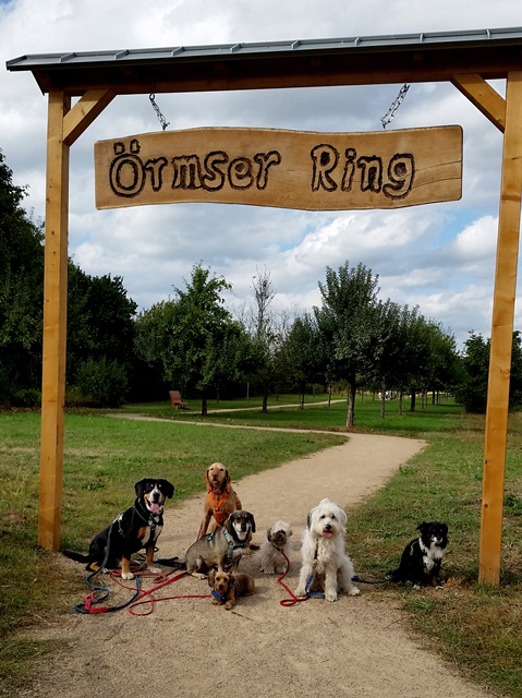 Einen spontanen Ausflug machten die Inhaber der beiden Hundepensionen Claudia Rünz (tierisch-froh) und Almut Hahn (dogether-Kettig) aus Kettig nach Urmitz und besuchten das neu gestaltete Erlebnisgelände „Örmser Ring“. Wir parkten unser Auto „Im Feld“ und der Weg führte uns als erstes durch den Obstlehrpfad mit Insektenhotels und informatives über die angebauten Früchte.